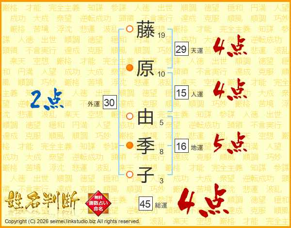 藤原由季子さんの総運は45画の4点!