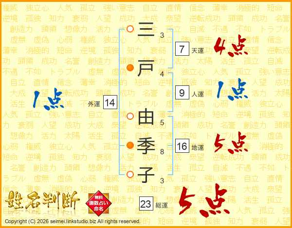 三戸由季子さんの総運は23画の5点!