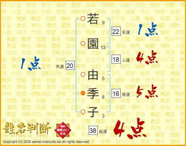 若園由季子さんの総運は38画の4点!