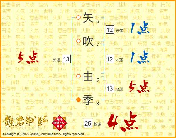 矢吹由季さんの外運は13画の5点!