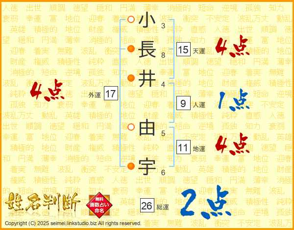小長井由宇さんの地運は11画の4点!