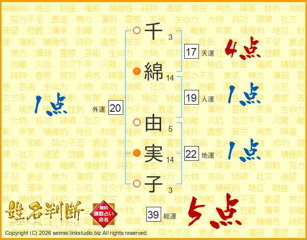 千綿由実子さんの総運は39画の5点!