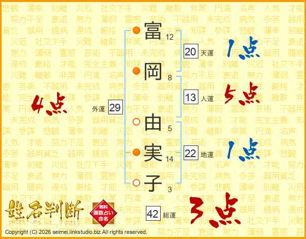 富岡由実子さんの人運は13画の5点!