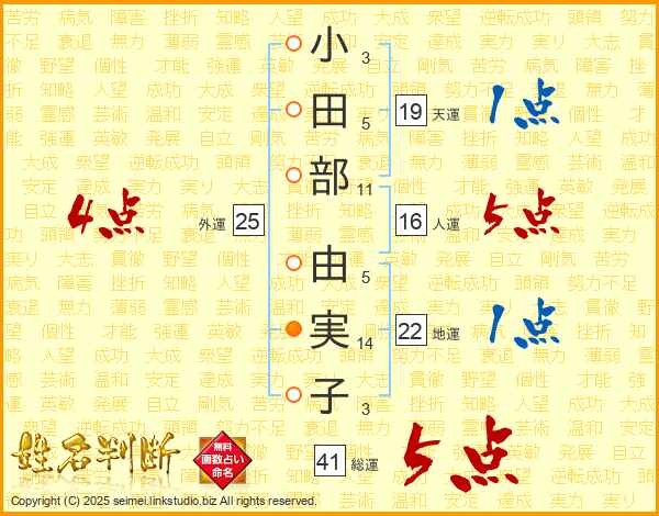 小田部由実子さんの総運は41画の5点!