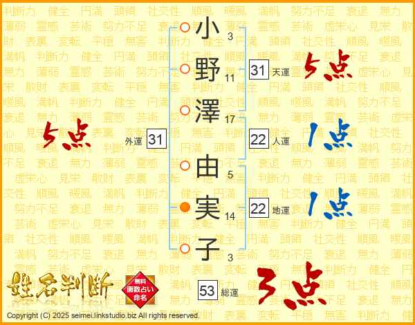 小野澤由実子さんの天運は31画の5点