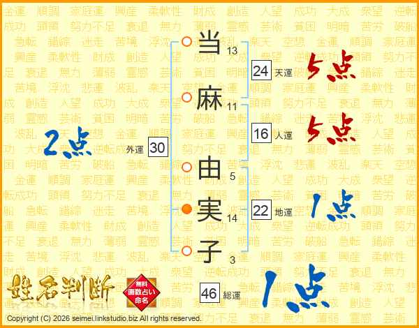 当麻由実子さんの総運は46画の1点!