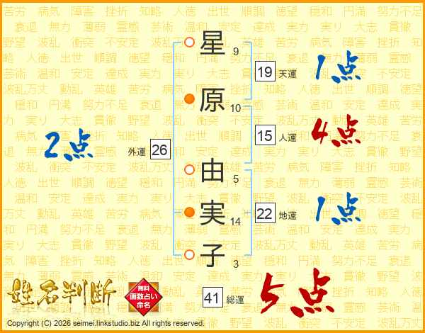 星原由実子さんの総運は41画の5点!