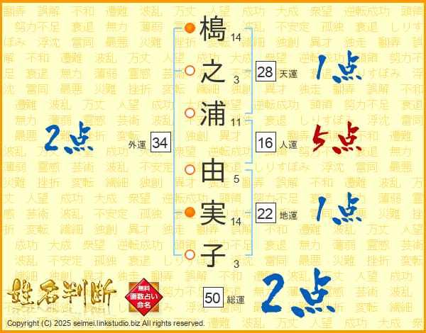 槝(14画)之(3画)浦(11画) 由(5画)実(14画)子(3画)
