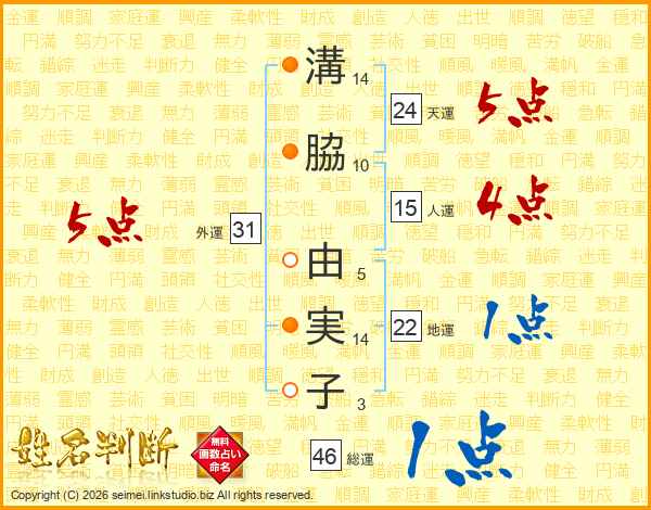 溝脇由実子さんの総運は46画の1点!