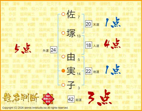 佐塚由実子さんの外運は24画の5点!