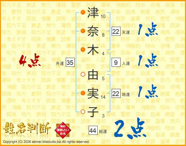 津奈木由実子さんの総運は44画の2点!