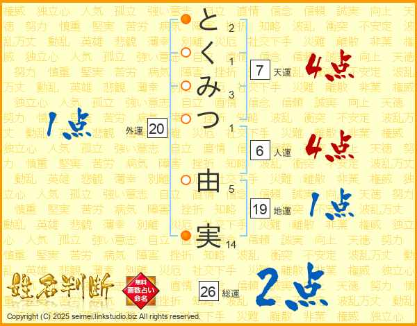 と(2画)く(1画)み(3画)つ(1画) 由(5画)実(14画)