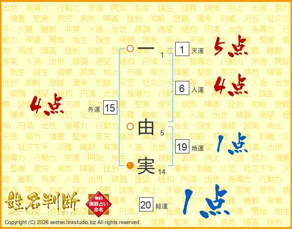 一由実さんの天運は1画の5点!