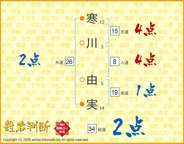 寒川由実さんの総運は34画の2点!