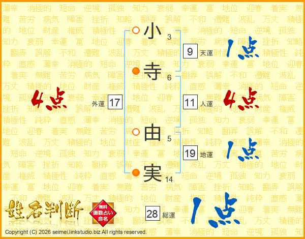 小寺由実さんの総運は28画の1点!