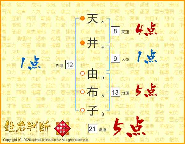 天井由布子さんの地運は13画の5点!