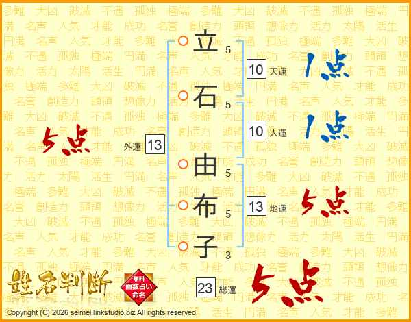 立(5画)石(5画) 由(5画)布(5画)子(3画)