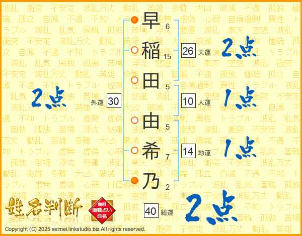 早稲田由希乃さんの総運は40画の2点!