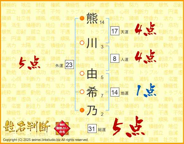 熊川由希乃さんの総運は31画の5点!