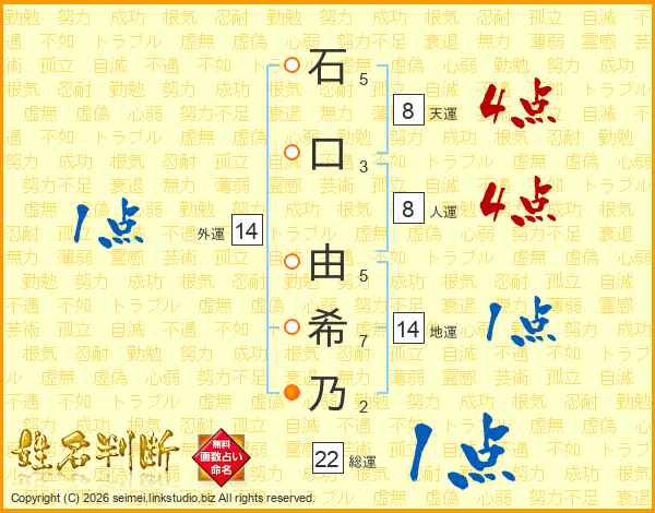 石口由希乃さんの地運は14画の1点!