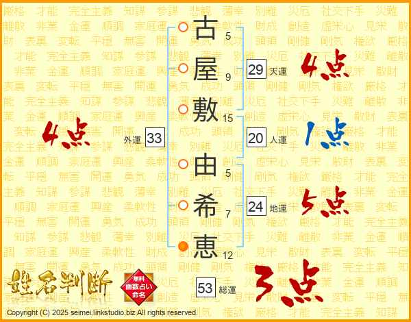 古屋敷由希恵さんの外運は33画の4点!
