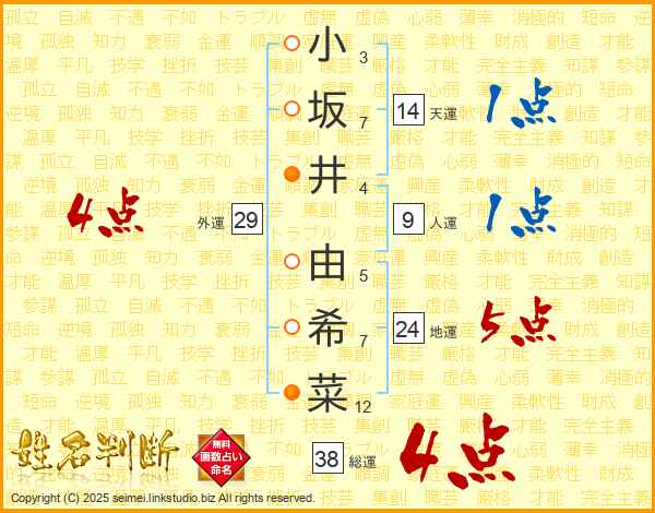 小坂井由希菜さんの総運は38画の4点!