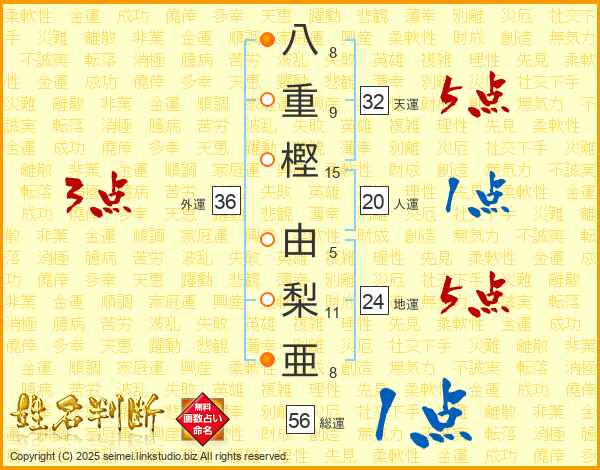 八重樫由梨亜さんの天運は32画の5点!