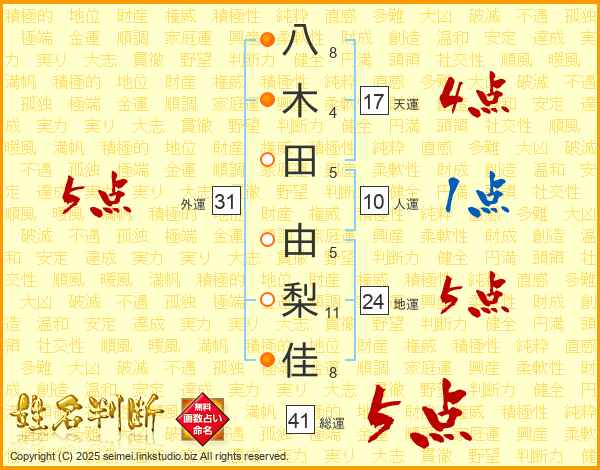 八木田由梨佳さんの天運は17画の4点!
