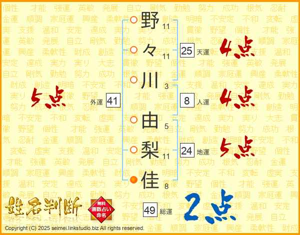 野々川由梨佳さんの天運は25画の4点!
