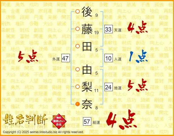 後藤田由梨奈さんの外運は47画の5点!