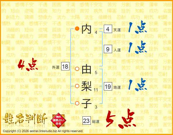 内由梨子さんの総運は23画の5点!