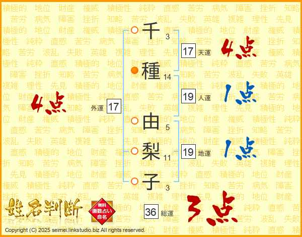 千種由梨子さんの天運は17画の4点!