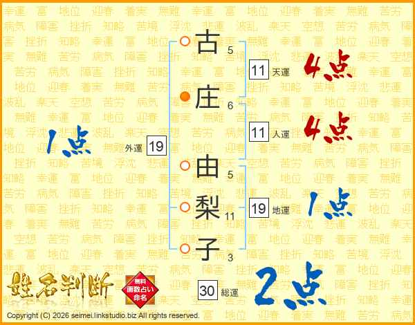 古庄由梨子さんの総運は30画の2点!