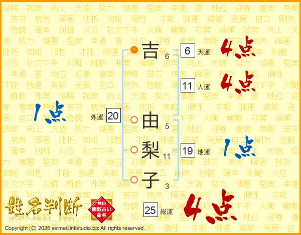 吉由梨子さんの総運は25画の4点!