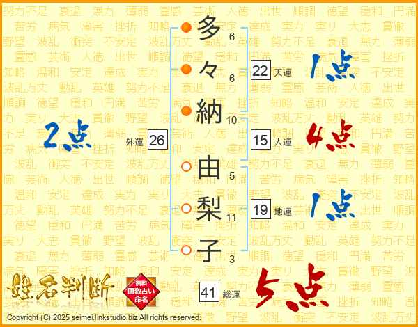 多々納由梨子さんの総運は41画の5点!