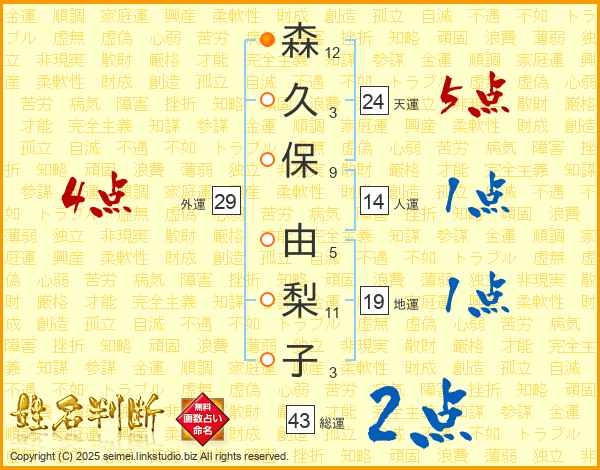 森久保由梨子さんの総運は43画の2点!