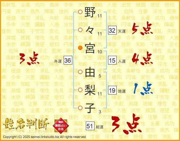 野々宮由梨子さんの総運は51画の3点!