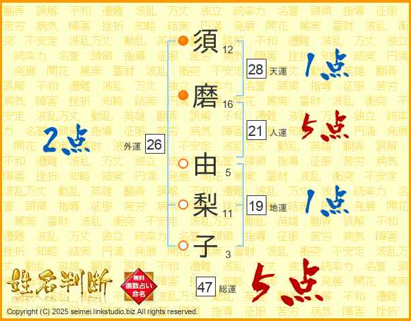 須磨由梨子さんの総運は47画の5点!