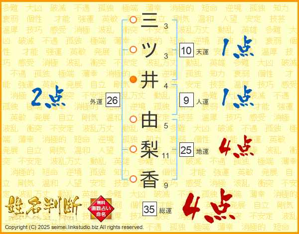 三ツ井由梨香さんの総運は35画の4点!
