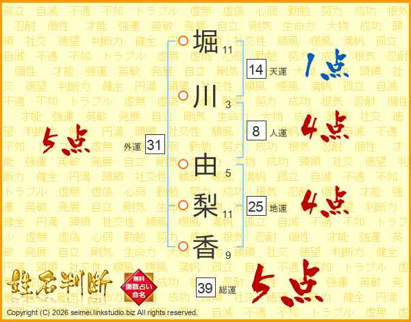 堀川由梨香さんの外運は31画の5点!