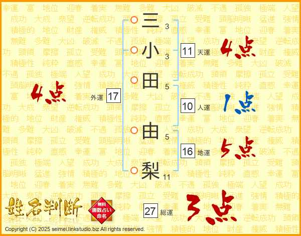 三小田由梨さんの天運は11画の4点!