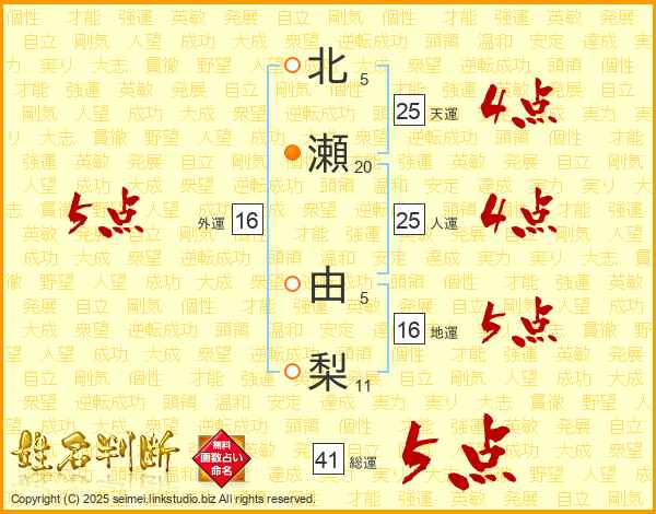 北瀬由梨さんの人運は25画の4点!