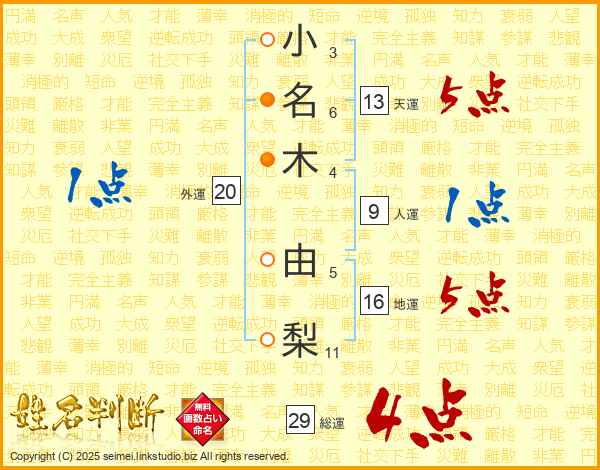 小名木由梨さんの総運は29画の4点!