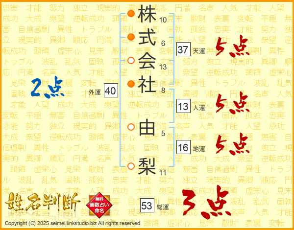 株(10画)式(6画)会(13画)社(8画) 由(5画)梨(11画)