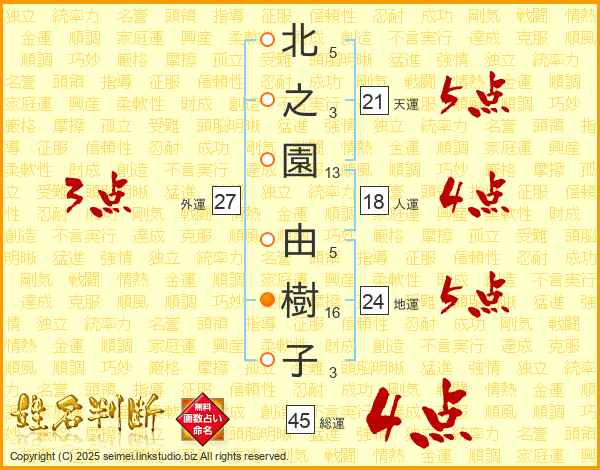北之園由樹子さんの天運は21画の5点!