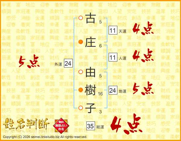 古庄由樹子さんの総運は35画の4点!