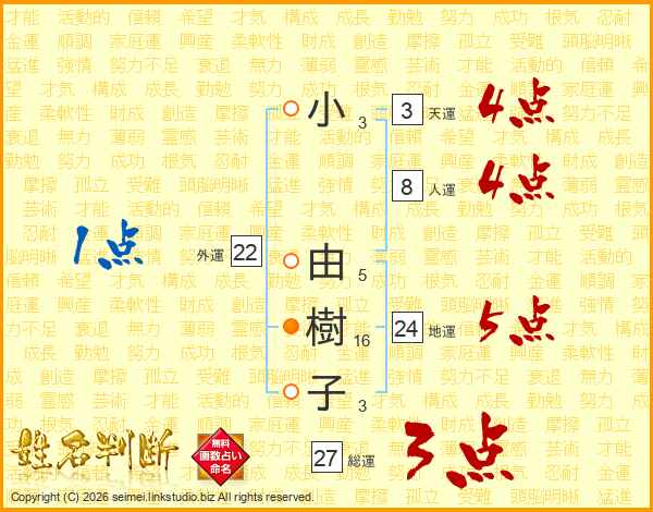 小由樹子さんの総運は27画の3点!