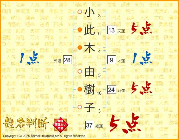 小(3画)此(6画)木(4画) 由(5画)樹(16画)子(3画)