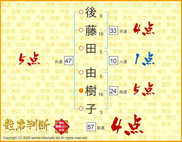 後藤田由樹子さんの天運は33画の4点!