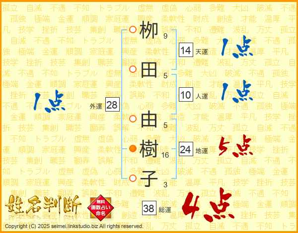 栁田由樹子さんの総運は38画の4点!